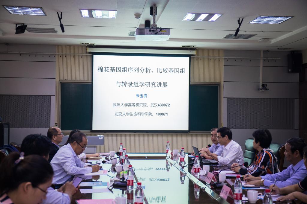 朱玉贤以《棉花基因组序列分析、比较基因组与转录组学研究进展》为题做了一场精彩的学术报告,朱院士系统全面、深入浅出的讲授方式让大家受益匪浅。朱玉贤还介绍了他带领的研究团队长期以来所取得的创新成果,并分享了他的科研经历和在科研工作中的感悟。
