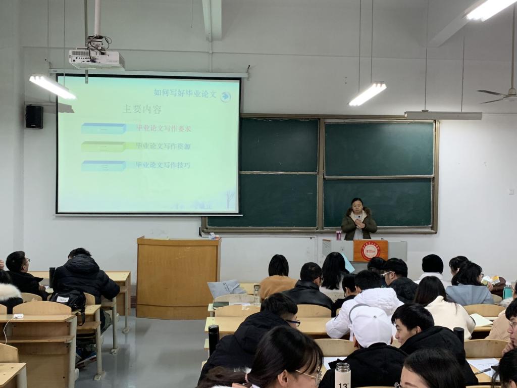 刘素慧博士从毕业论文的写作特点、格式、内容、准备等方面对同学们进行了讲解,李杰老师从毕业设计的特点、具体做法等做了讲解,刘文宝老师从学生实习的管理、安全、纪律等做了要求,鼓励大家在实习中寻找不足,及时补足、充实自我,做好从学生到职场人的角色转变。