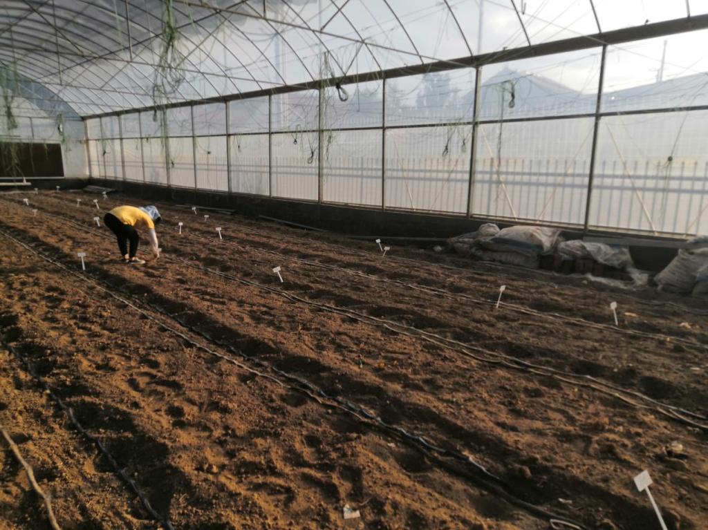 实践中期,在中国农业科学院高建昌研究员的带领下,中国农业科学院寿光蔬菜研发中心小分队的同学们来到实验田,学习并开展西瓜定植工作。西瓜定植,一穴一株,优先选择壮苗定植,正常移栽的适龄期为四叶期,注意温室遮阳,避免幼苗干。而山东农业科学院蔬菜花卉研究所小分队的同学们也相继展开了黄瓜自交系穴盘苗的定植,同学们从前期准备工作到移栽参与了定植的整个过程,巩固所学知识、锻炼实践技能的同时,也更加深刻体会到重农固本是安民之基、治国之要,任何时候都不能忽视农业、不能忘记农民、不能淡漠农村。