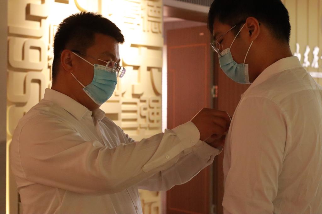 入团仪式在庄严的国歌声中拉开了帷幕,党总支副书记王猛宣读了新团员名单,并为新团员佩戴团徽。在领誓人赵彦茹带领下,新团员庄重宣誓,老团员重温入团誓词,铿锵有力的誓词激荡着每一位团员的心。同学们纷纷表示作为一名光荣的共青团员,要坚定不移听党话、跟党走,让青春在为祖国、为民族、为人民、为人类的不懈奋斗中绽放绚丽之花,用实际行动践行“请党放心 强国有我”的铮铮誓言。