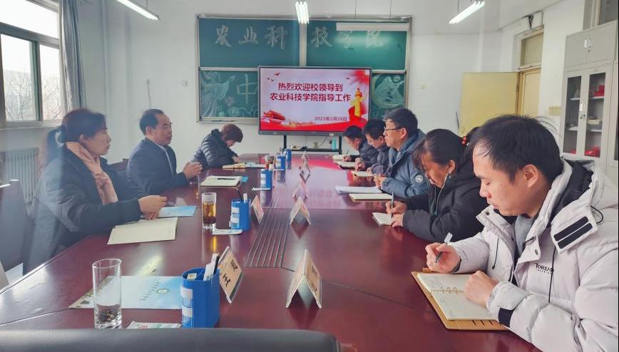 李校长表示农业科技学院工作有特色、重实效,对学院的各项工作给予高度肯定,希望农科学院继续做好排头兵,明确学校办学定位和发展目标,打造农业优势与特色,为推进必赢高水平应用型高校建设做出贡献。李校长要求,加强教科研团队建设,在培育硕士点建设方面早筹备,为学校高质量发展提供新的支撑。他强调,要深入学习贯彻党的二十大精神,要在全面学习、全面把握、全面落实上下功夫,结合学校实际和本职工作,将学习成果转化智慧力量、思路措施和工作成效,落实立德树人根本任务。