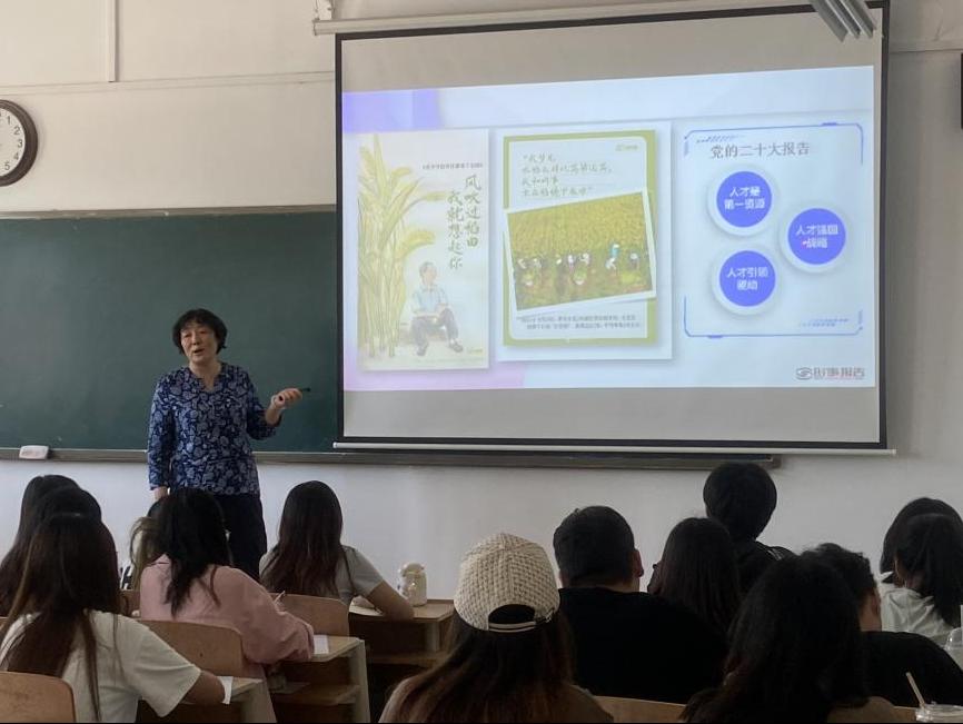 郑校长以党的二十大报道中所讲的“人才是第一资源”、“人才强国战略”和“人才引领驱动”为出发点,结合我国社会发展现状与国际人才发展情况,论述了创新发展、战略人才的重要性。她鼓励和引导青年学生要怀有爱国之心,砥砺报国之志,继承和发扬老一辈的科学家胸怀祖国、服务人民的优秀品质,肩负起时代赋予的重任,不断把中华民族复兴伟业推向前进。