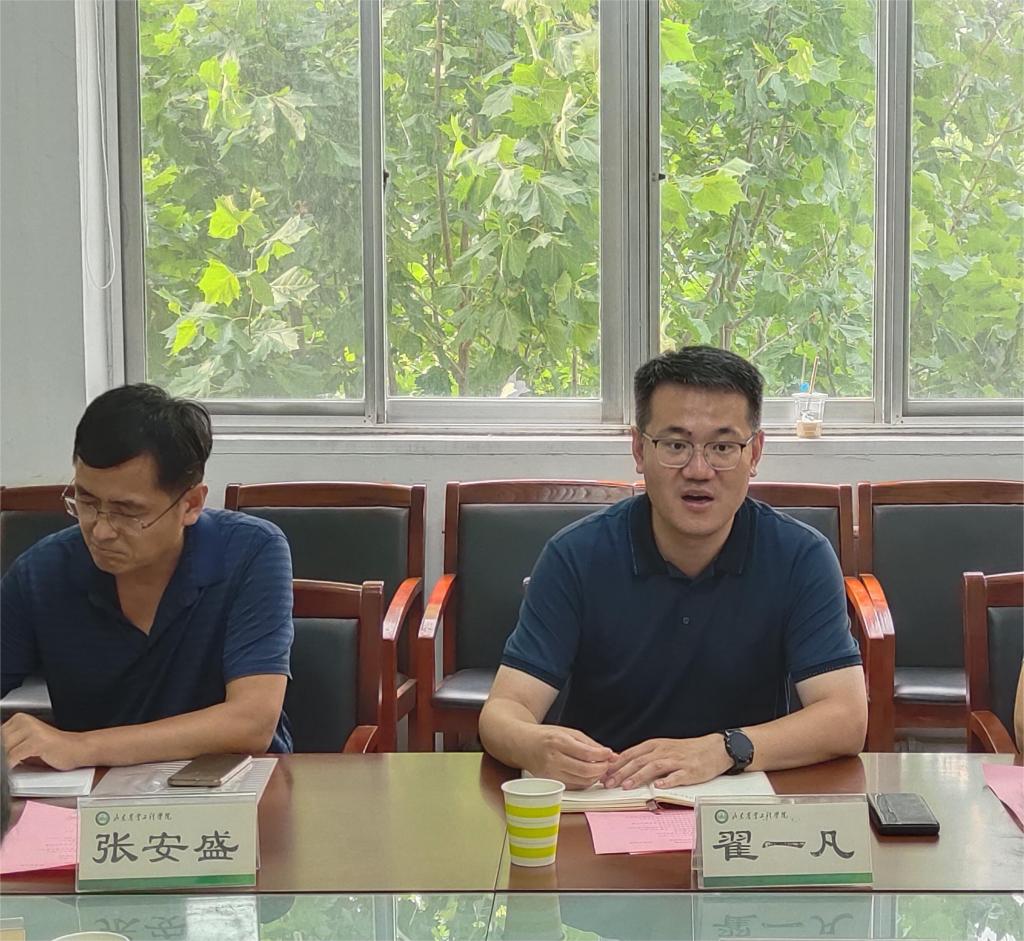 随后,杨向黎院长介绍了农业科技学院学科专业发展、人才培养、大学生创新创业等方面情况及取得的成绩。翟一凡所长就植保所的概况、科研团队建设及取得的科技成果等情况进行了介绍,并就支部建在团队的做法进行了交流。