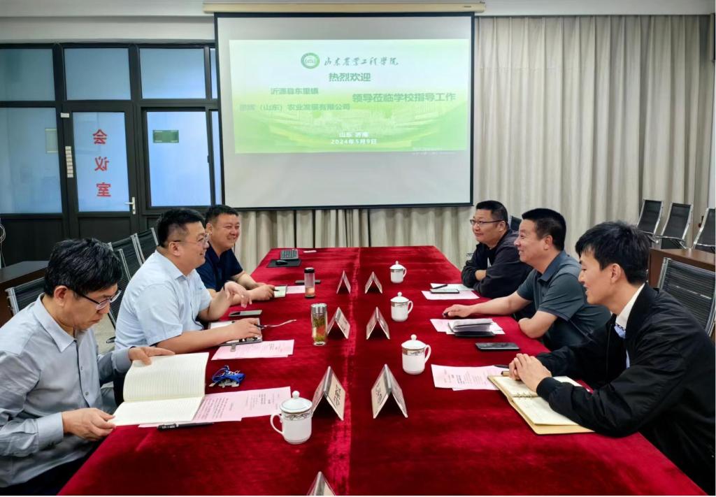 5月9日,沂源县东里镇人大主席任大向、星辉(山东)农业发展有限公司总经理杜兴伟等一行3人来校洽谈校企合作事宜,我院党总支书记王猛、副院长刁有江及相关教师代表参加座谈会。王猛书记主持会议。