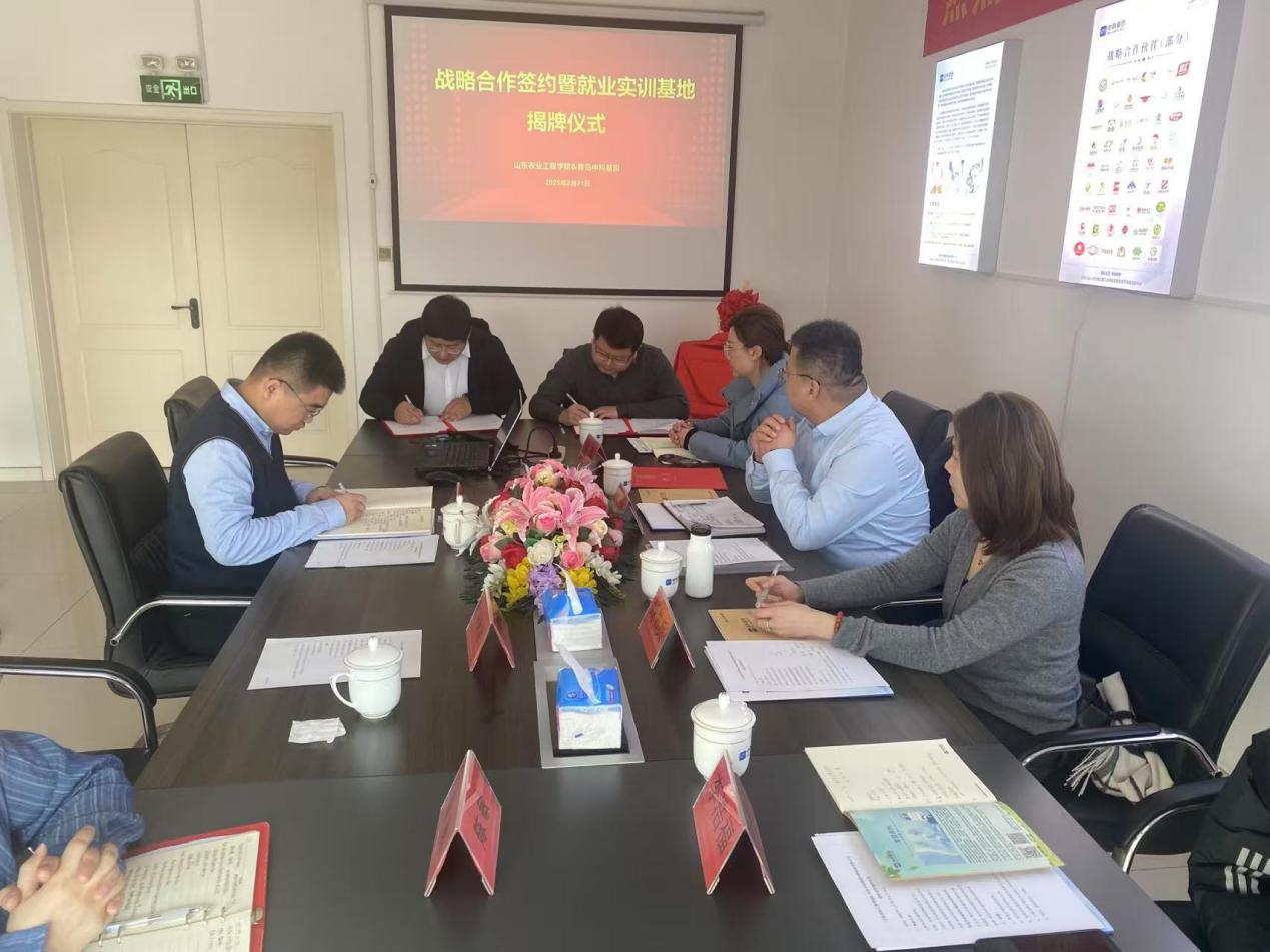 交流结束后,王猛书记和王合亮总经理共同为学生就业实训基地揭牌,并为企业学校合作的教育部供需对接就业育人项目签约。