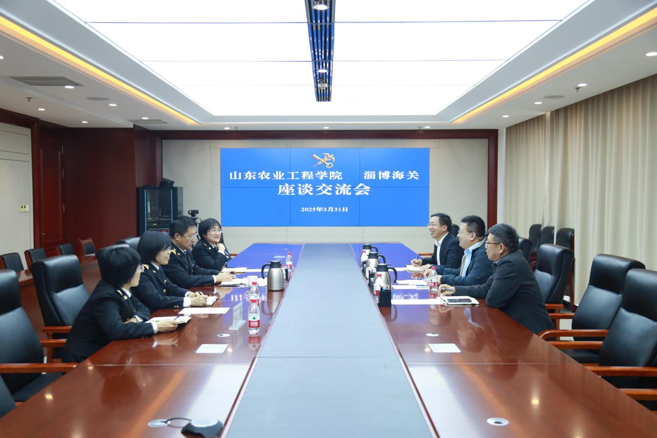 3月31日,学院党总支书记王猛、副院长刁有江、教授孙东文前往淄博海关,就双方合作事宜展开深入洽谈,并看望慰问在此进行毕业实习的学生。淄博海关副关长朱耀武、海关综合服务中心党支部书记张苗、查检二科科长尹晓艳等参与洽谈。