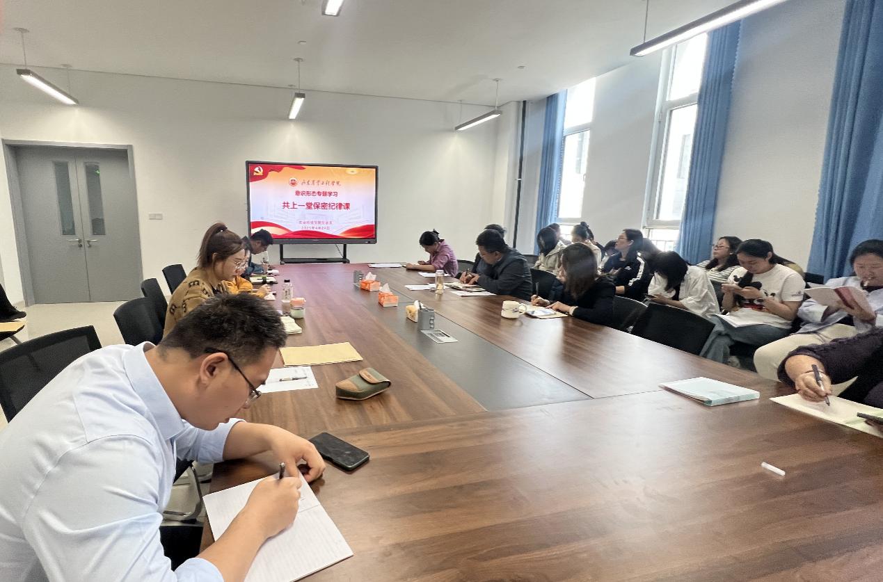 为强化师生保密意识和法治观念,进一步加强和改进意识形态工作,4月24日,我院组织开展“共上一堂保密纪律课”意识形态专题学习会,全体教职工参加会议。党总支书记王猛主持会议。