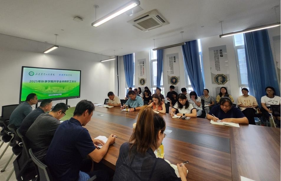2025年8月30日上午,农业科技学院在淄博校区文法东楼A303会议室召开2025年秋季新学期教职工工作会议,系统部署新学期教育教学重点任务,会议由学院党总支书记王猛同志主持,学院全体教职工参加会议。