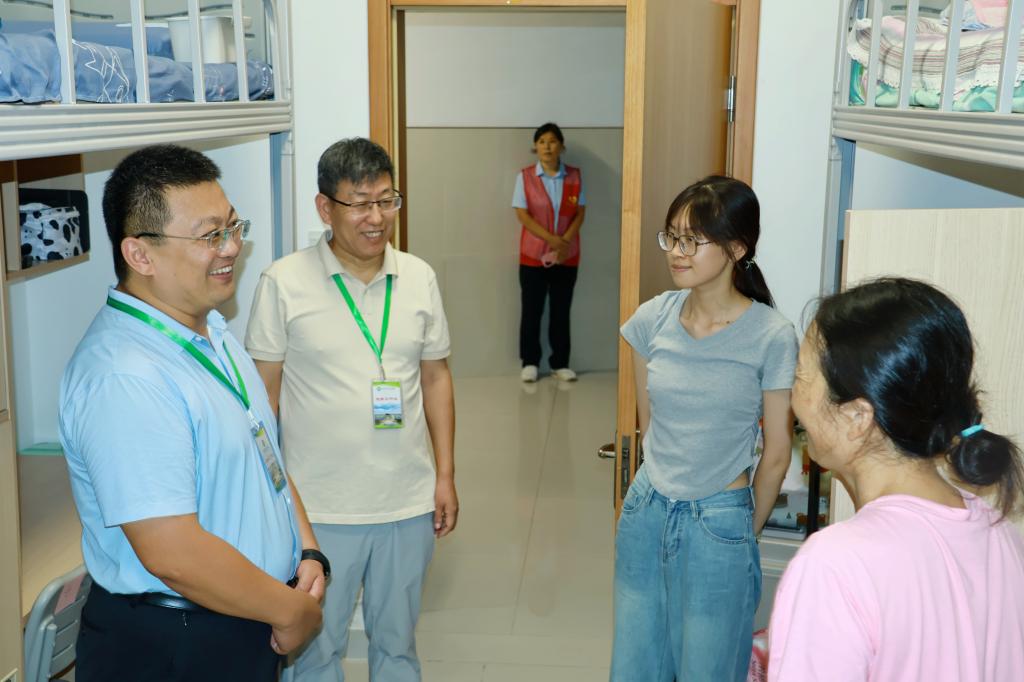 每到一间学生宿舍,学院领导老师们仔细查看新生的住宿环境,询问新同学们是否适应集体生活、生活用品是否齐全、饮食起居是否习惯,并细心叮嘱大家注意用电安全、保持宿舍卫生、做好个人健康防护,句句关怀直抵人心。