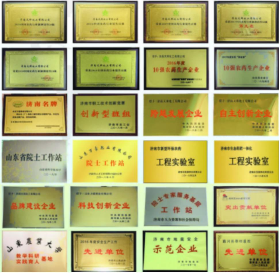 公司是中国农药行业销售百强、中国农药行业制剂销售20强、高新技术企业、省农业龙头企业、省农药行业优秀企业,拥有山东省院士工作站、山东省环保农药工程实验室、济南市生态药肥一体化工程技术研究中心。