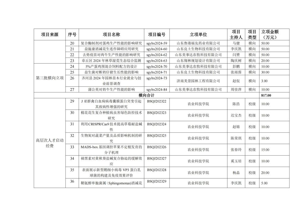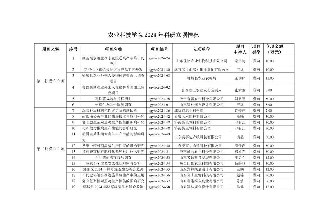 农业科技学院2024年科研立项