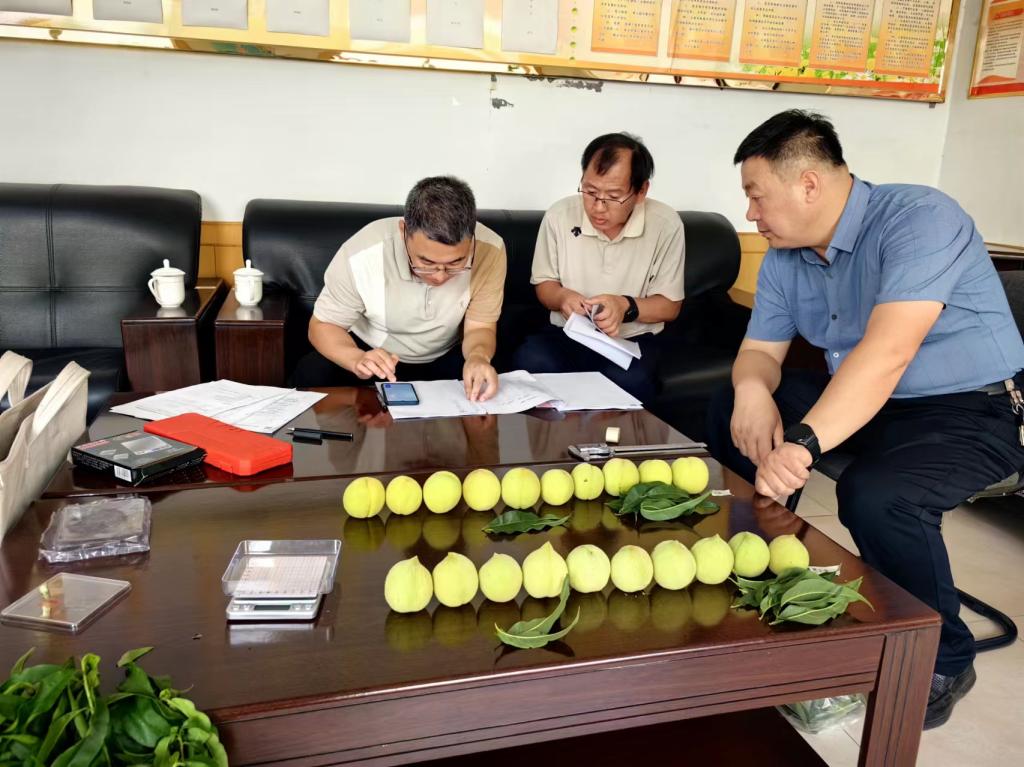 在现场考察中,专家组严格按照农业农村部植物新品种测试中心印发的《植物新品种特异性、一致性和稳定性测试指南桃》要求,查看了‘金黄金5号’和‘金黄金8号’的栽培现场,审核了筛选的近似品种,进行了测试性状的现场数据采集,并对申请人自主开展的DUS测试进行复核。