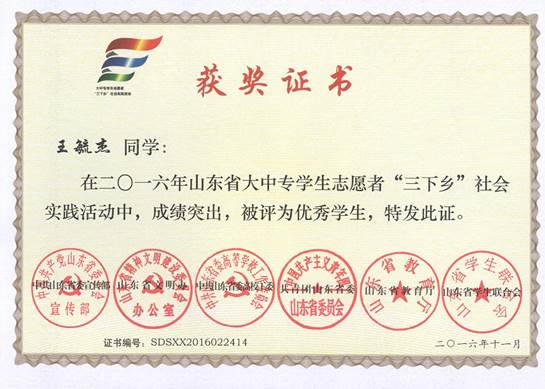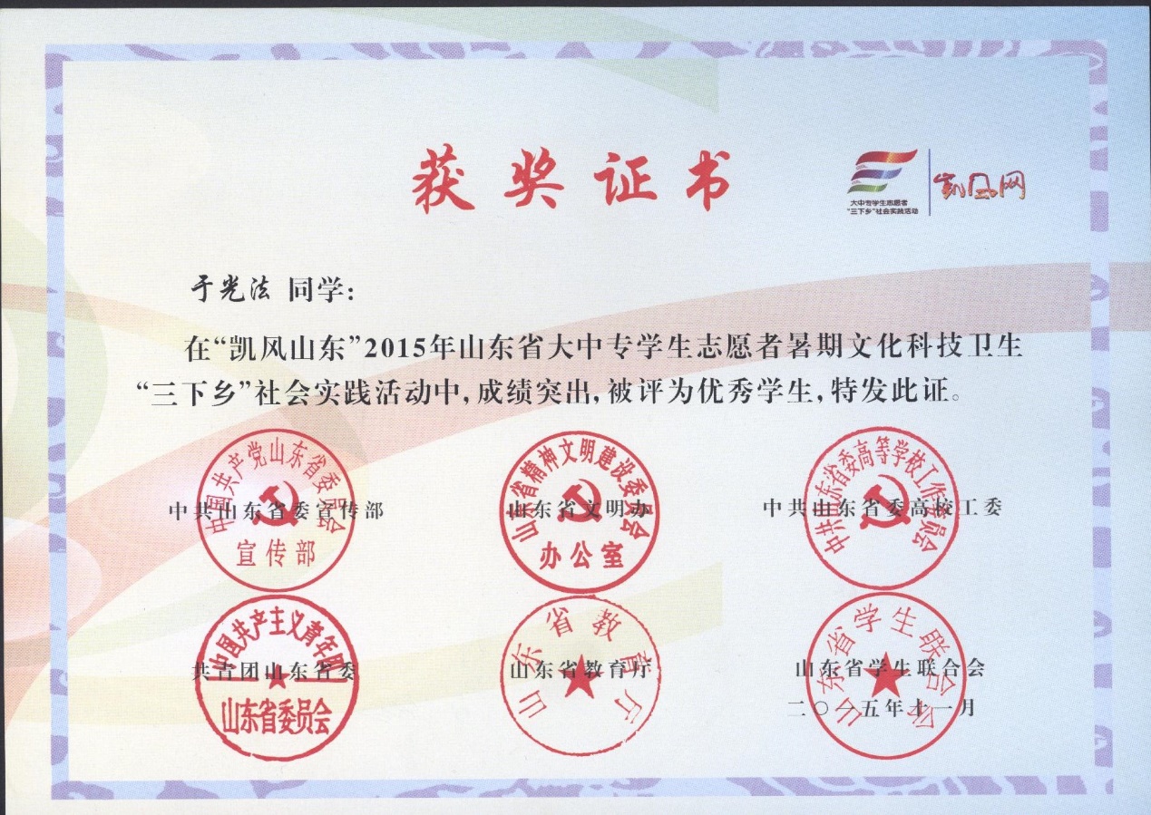 2015年山东省大中专学生志愿者暑期文化科技卫生“三下乡”社会实践活动-于光法