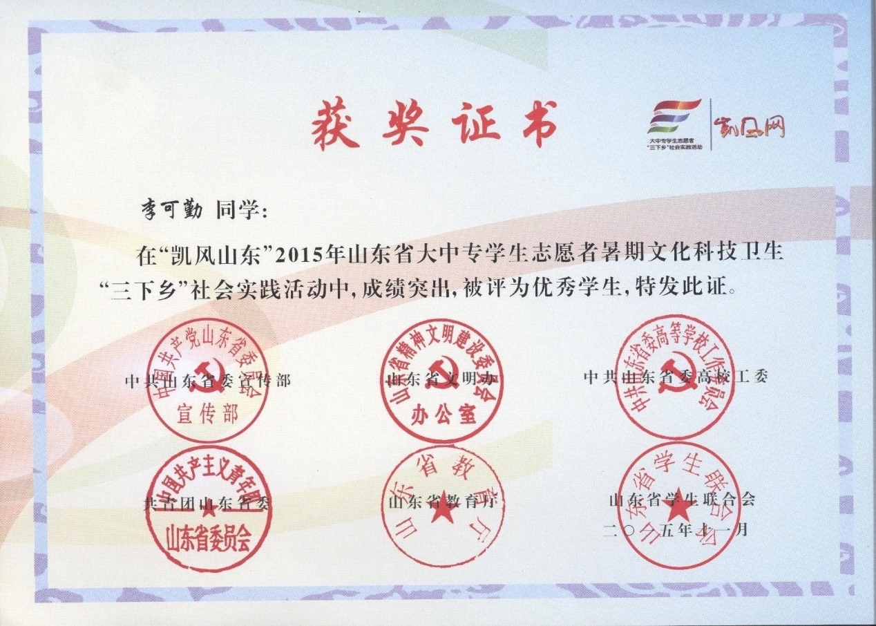 2015年山东省大中专学生志愿者暑期文化科技卫生“三下乡”社会实践活动-李可勤