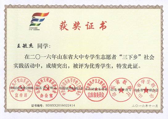 在二O一六年山东省大中专学生志愿者“三下乡”社会实践活动-王毓杰