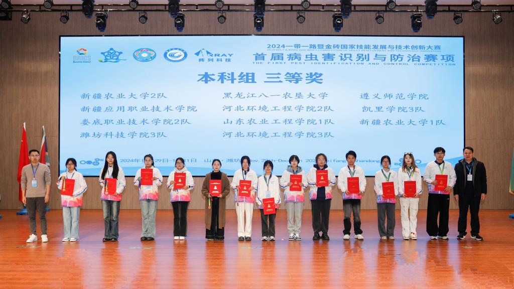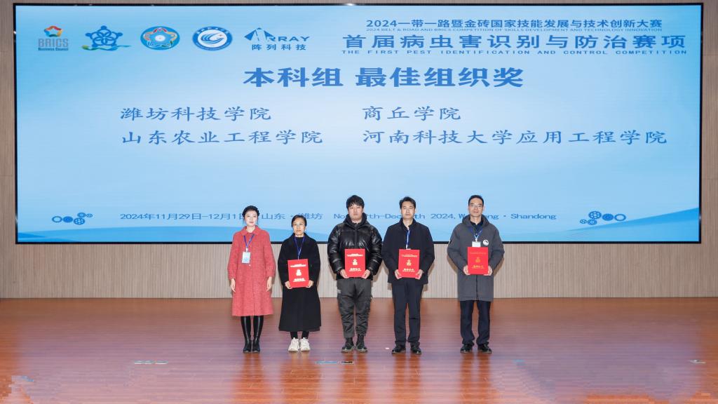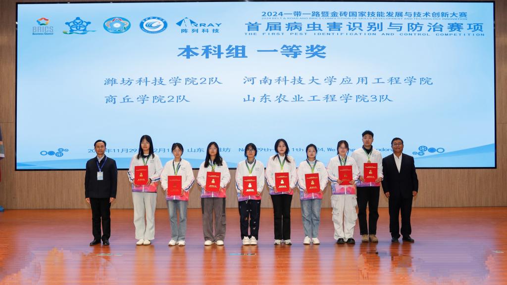 11月29日-12月1日,2024“一带一路”暨金砖国家技能发展与技术创新大赛之首届病虫害识别与防治赛项国内赛决赛,在山东潍坊圆满落幕。经过紧张角逐,必赢由农业科技学院和国土资源与测绘工程学院学生组成的3支队伍在国内赛决赛中,荣获本科组一等奖1项、三等奖1项、优秀奖1项,一等奖指导教师杜志敏和张忠峰被授予“优秀指导教师”荣誉称号,必赢被授予“最佳组织奖”荣誉称号。
