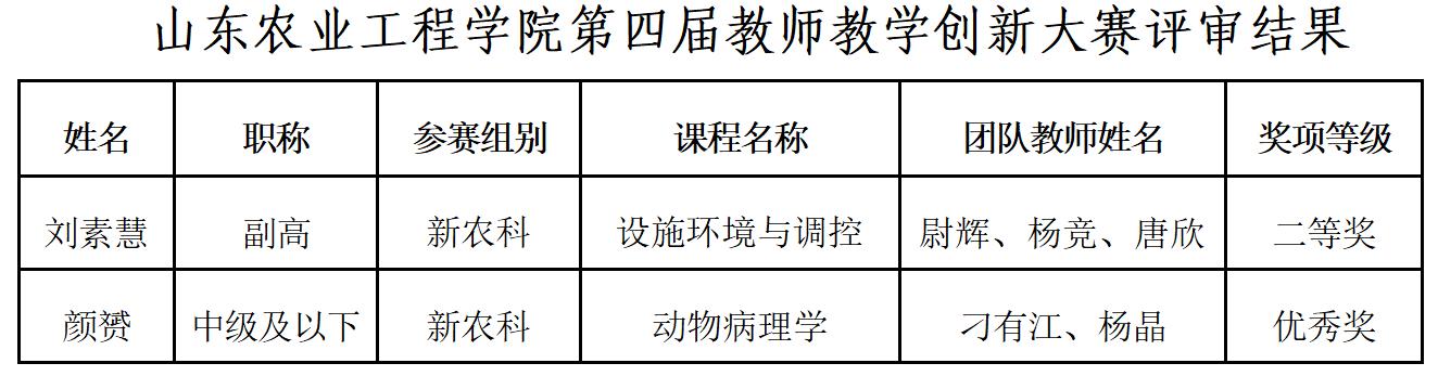 近日,437ccm必赢国际官网第四届教师教学创新大赛评审结果揭晓。我院刘素慧老师主讲的《设施环境与调控》荣获新农科副高组二等奖;颜赟老师主讲的《动物病理学》荣获新农科中级及以下组优秀奖。