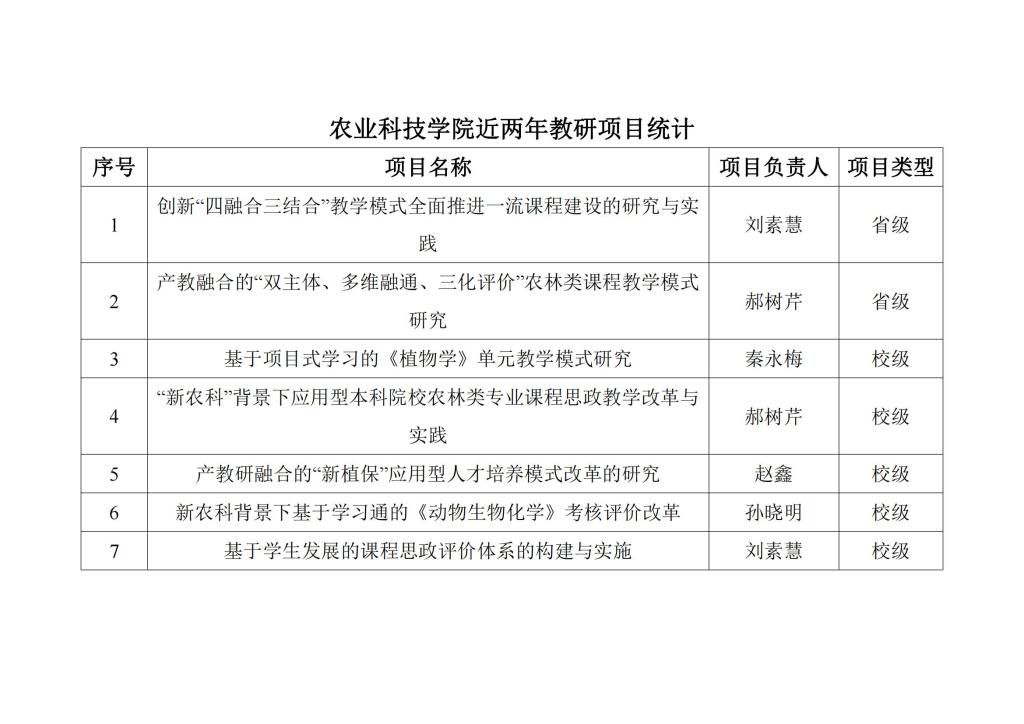 农业科技学院近两年教研项目统计