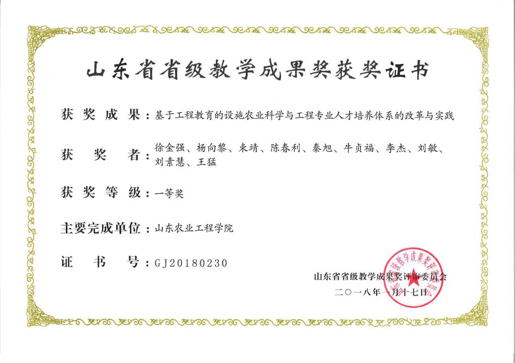 2018年山东省省级教学成果奖一等奖