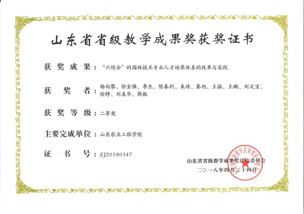 2018年山东省省级教学成果奖二等奖