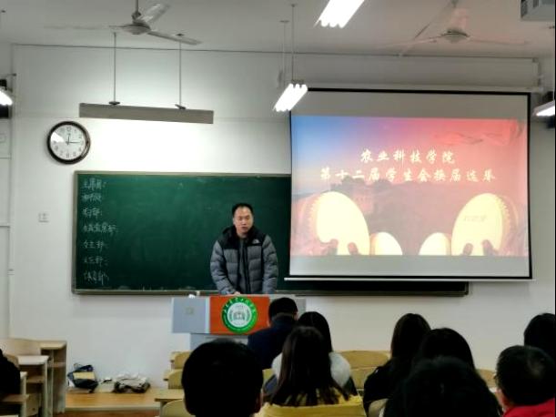 11月22日,我院第12届学生会换届选举大会于济北校区二号教学楼221教室举行。学院党总支副书记王猛、辅导员华晓晓和孙琪老师以及全体学生会成员、各班学生代表参加会议,会议由学院团总支书记赵侃主持。