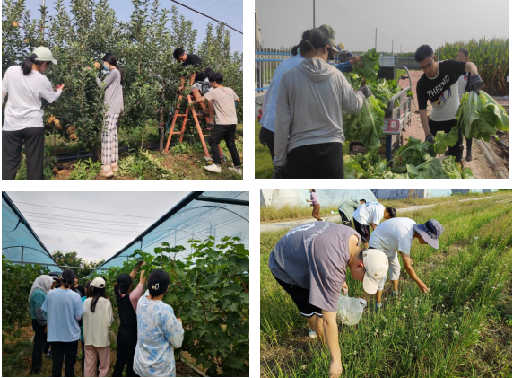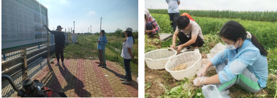 本次专业实践紧密结合山东省农科院实验示范基地的生产需求,开展了果园果树修剪、温室农作物管理和大田作物采收等工作。同学们在技术管理员的带领下,参观学习了作物耐盐碱性实验项目、盐碱地种植制度长期观测实验、"上农下鱼"的农业种植模式等多项实验项目,了解了盐碱地科学研究的前沿技术及合理的开发利用的新模式。王功帅老师在基地现场讲解、示范果树修剪知识和技能,指导学生进行果树的修剪工作;李阳老师带领同学开展进行花生测产工作。除此之处,同学们进行了葡萄和苹果的剪枝压条、梨的采收、芝麻采收、韭花采收、地瓜采收、草莓立体栽培、茄子种植、温室种植管理、香菜种植等多项工作。