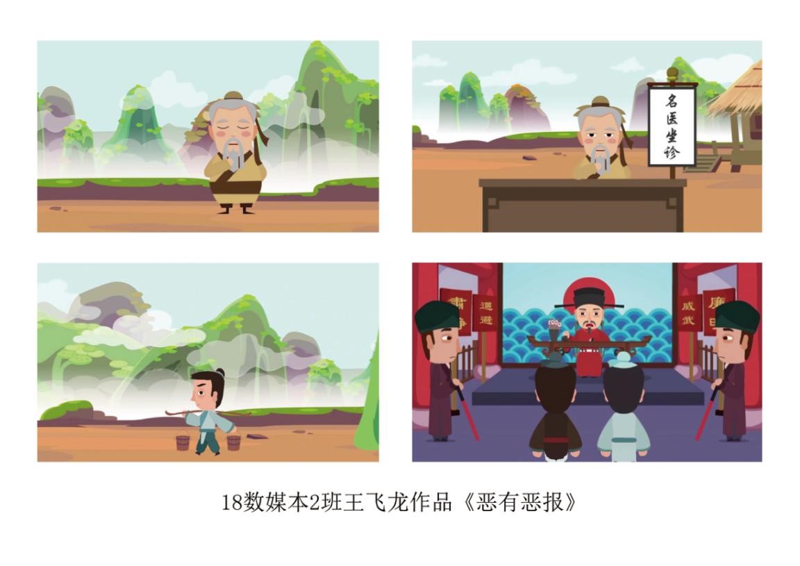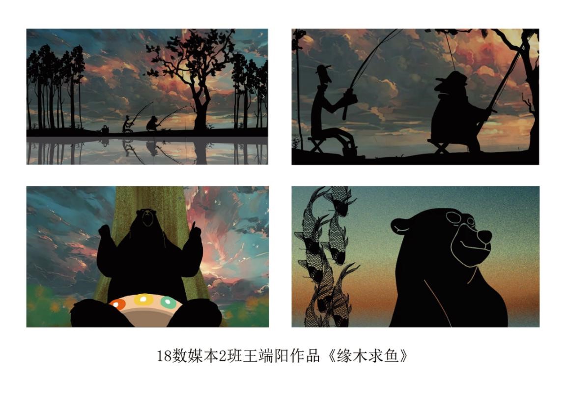 学生们对二维动画有浓厚的兴趣,他们从中国传统文化的角度出发,有的对剪纸兴趣浓厚,有的热衷于皮影的表现形式。学生们用二维动画这种艺术形式表现了令人深思的大道理。对大二的学生来说,这是一门难度较高的课程。但是经过了八周的学习,他们从刚开始的兴奋,到中期的困难重重,到最后独立完成一部完整的片子。真可谓是雄关漫道真如铁,而今迈步从头越!(指导教师 张洁)