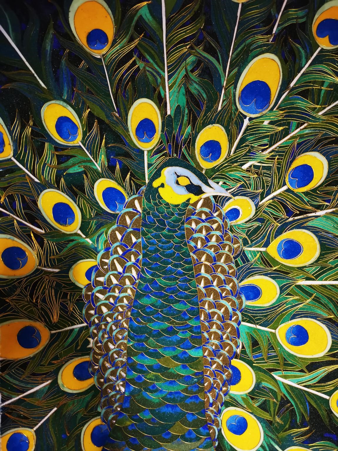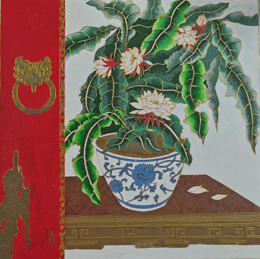 课程中共设有两个实训项目,掐丝珐琅彩工艺画和综合绘画与材料媒介的创作,下面是20级工艺美术1、2班两次实训课程的作品。(指导教师:隋燕、王郡娜)