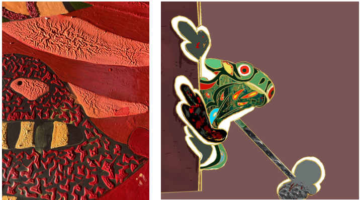 张玉欢 《渔民节的祈福》局部 任晓 《流绪微梦》局部