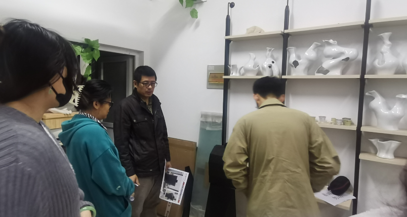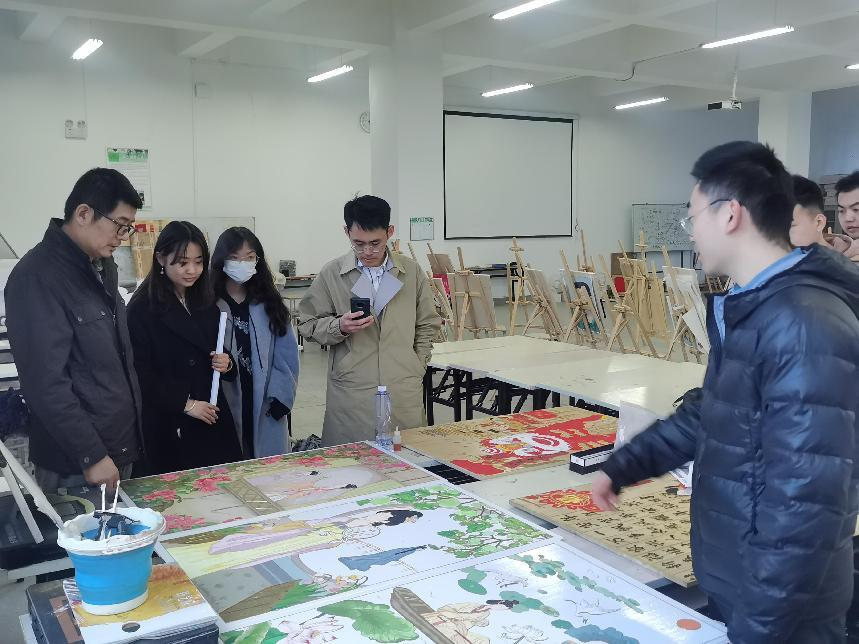2023年4月6日,工艺美术教研室指导毕业设计的部分专业教师对所在指导小组学生的毕业设计开展中期检查和指导工作。
