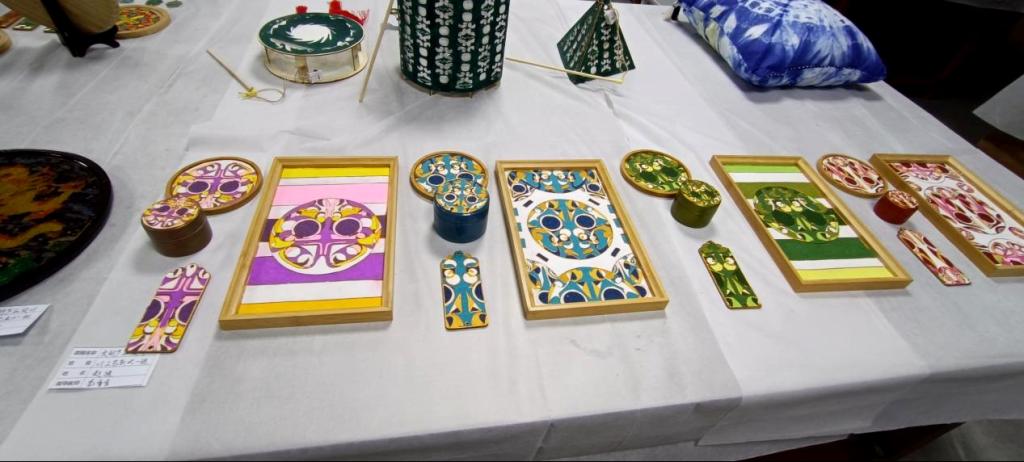 学生通过对文化类别、文化内容、应用内容、设计载体等方面对文化进行深度剖析,结合文创设计方法对文化基因、文化内涵进行概括提取、再设计,以及设计应用。以工艺品为载体,运用掐丝、印染、漆艺等手工艺,将文创设计方案制作成实物作品。课程经过文化调研、文化元素挖掘、文化元素提取、文化元素设计应用等阶段,增强了学生对中国传统优秀文化的文化认同和文化自信,与此同时,学生的设计能力、审美能力和创作能力都有不同程度的提升。