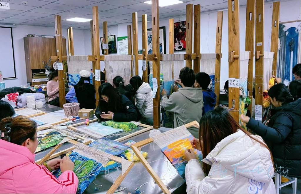 授课过程中注重理论和实践相结合,使学生不断摸索“材”“技”“艺”的融合,培养学生对纤维材料质感的敏感度和表现力,鼓励学生结合自身喜好选择题材,运用前期课程所学知识自行调配颜色,提高其学习热情。实践环节中,分组完成作业,培养学生团队协作能力和沟通能力,使学生手脑并用、知行合一,在制作过程中不断磨炼意志,感受手艺的温度。