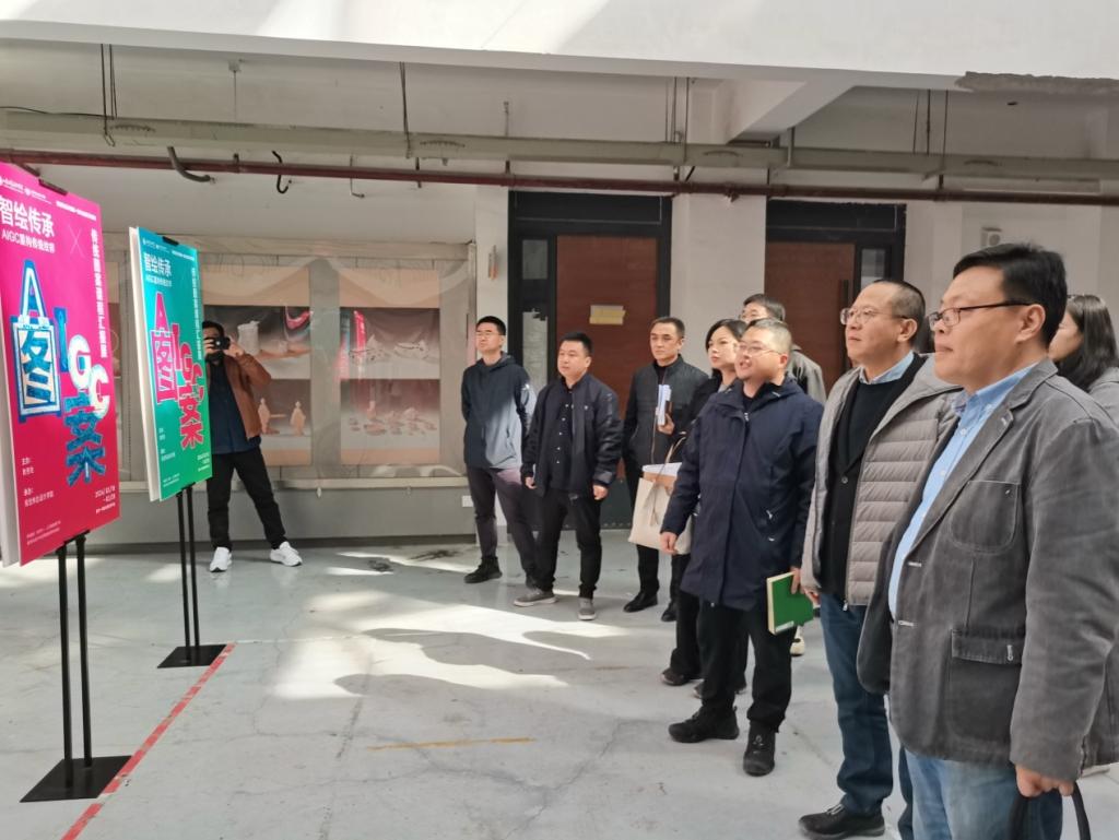 座谈会后,还观摩了“AI-图案设计学生作业展”、AI数字媒体艺术工作室,听取设计课程任课老师介绍他们融合AIGC的教学实践,收获很大,下一步对我院做好AI赋能专业建设以及融入教学工作具有重要的借鉴和指导意义。