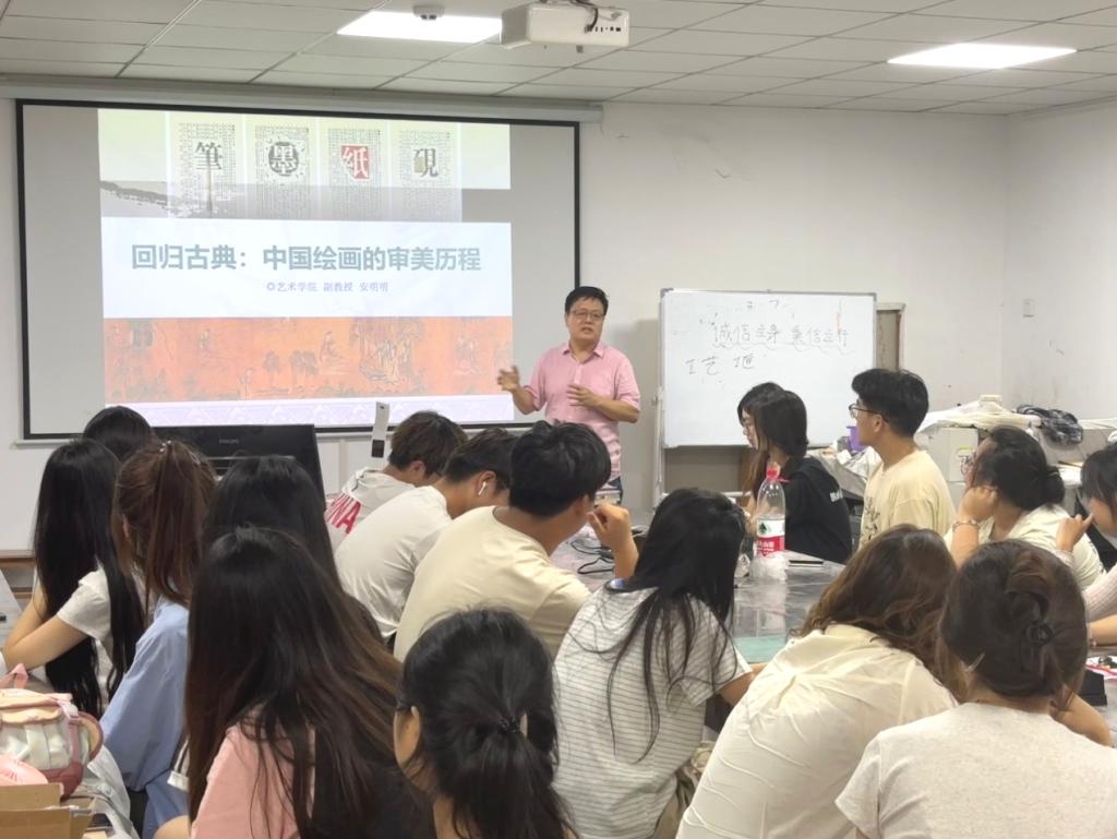 6月17日,艺术学院副院长安明明副教授在济南校区2号教学楼111室为艺术学院师生带来一场关于“回归古典:中国绘画的审美历程”的学术讲座,艺术学院部分师生参加了此次讲座。