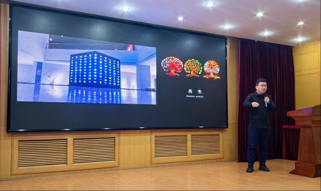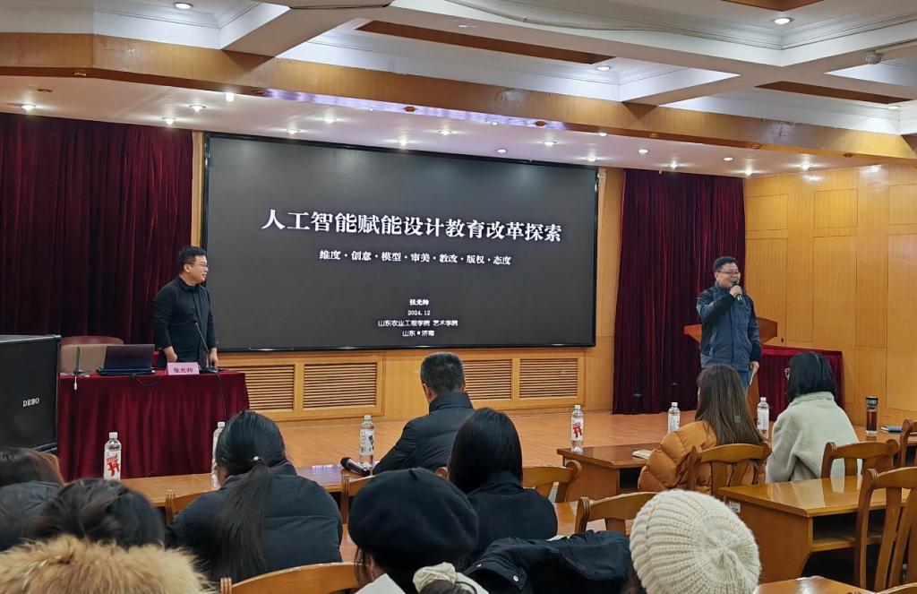 在人工智能与设计教育日益紧密融合的当下,为深入洞察AI技术如何重塑艺术设计的教学理念、内容、方法及实践,12月19日下午,艺术学院于济南校区1号教学楼5楼多功能厅,邀请山东工艺美术学院数字艺术与传媒学院副院长张光帅教授,举办了一场题为《人工智能赋能设计教育改革探索》的前沿讲座。本次讲座由艺术学院副院长安明明主持,吸引了数字媒体艺术、视觉传达设计专业百余名师生积极参与。