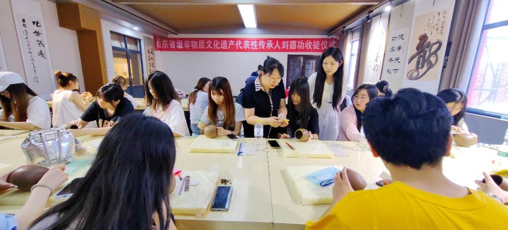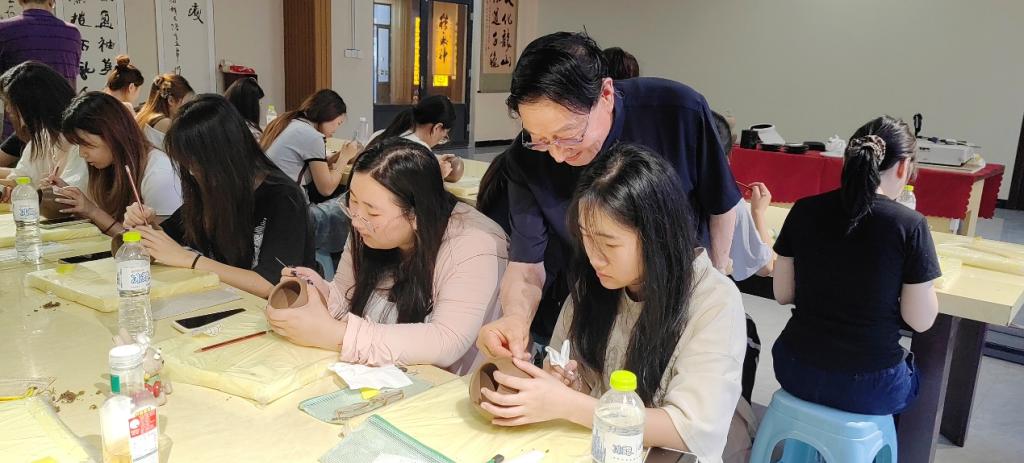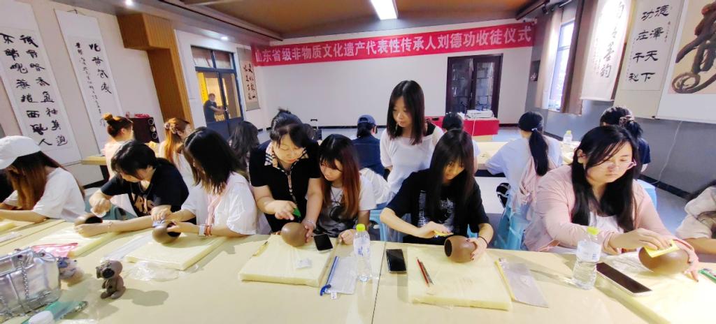 6 月 30 日,艺术学院工艺美术专业大二学生在赵辉、韩照丹、王煜莹三位校内导师的带领下,走进校企合作实践教学基地 —— 济南德功龙山黑陶艺术有限公司,开启了一场沉浸式的黑陶文化探索与实践之旅。