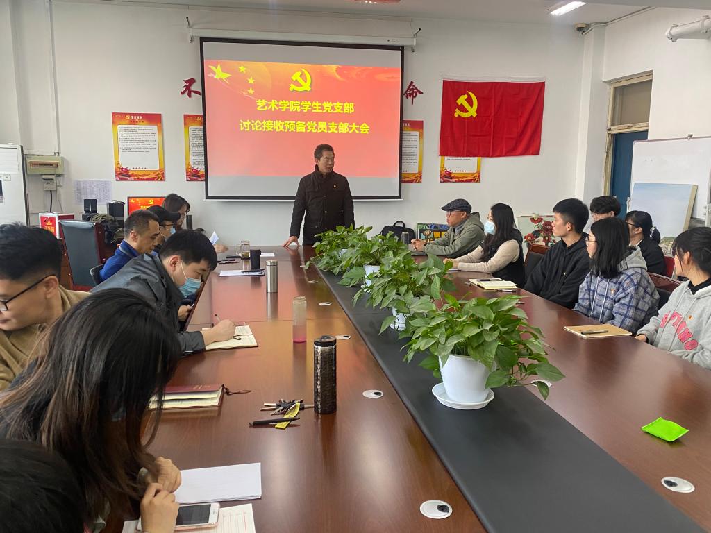 2021年3月24日,艺术学院学生党支部于济南校区1教108召开接收党员发展大会,讨论关于接收郑冰鑫等26位发展对象为中共预备党员的问题。会议由学生党支部书记钱玉翠主持,院党总支书记解心江、副书记魏陵出席会议,艺术学院学生党支部党员、预备党员、培养考察人参加会议。
