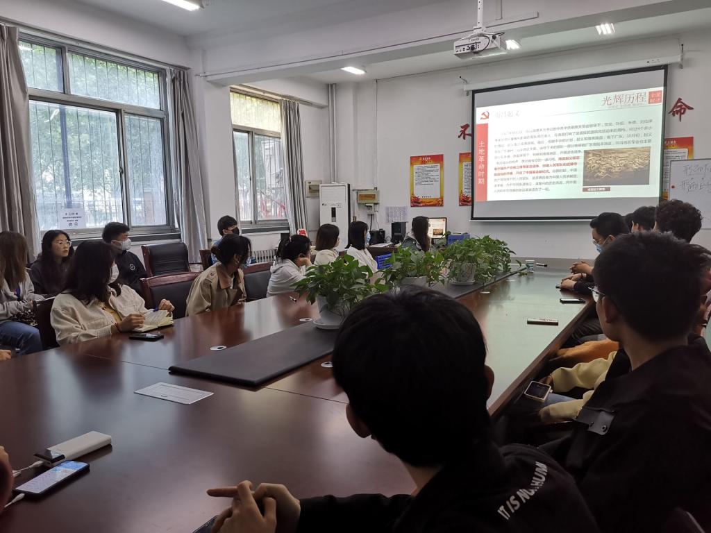 为隆重庆祝中国共产党成立100周年,重温党的光辉历程,继承和发扬党的优良革命传统。艺术学院学生党支部于2021年4月23日在1教108教室开展了关于“党史学习教育”的活动。本次活动由支部书记钱玉翠主持,学生党支部党员同志、预备党员同志参加了此次活动。