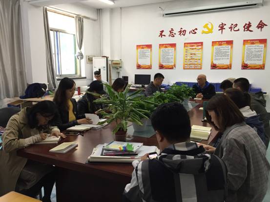 学院党总支副书记魏陵领学了习近平关于“不忘初心、牢记使命”论述摘编的第五部分:《把政治建设摆在首位,不断增强“四个意识”、坚定“四个自信”、做到“两个维护”》。