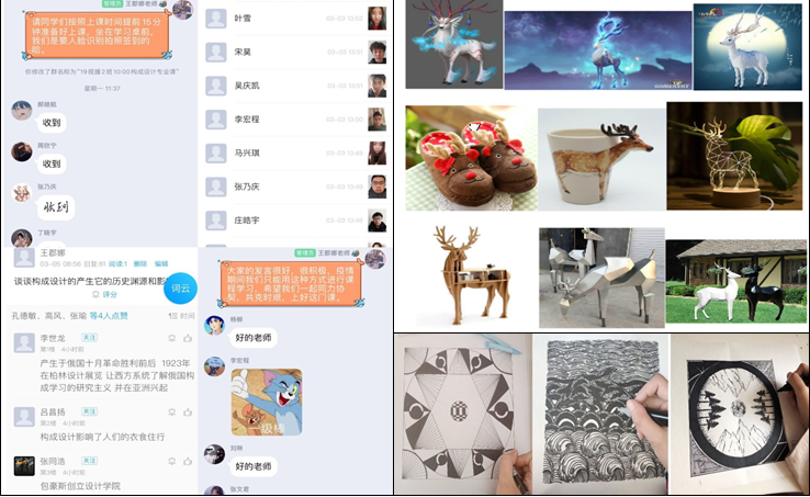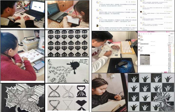 《构成设计》课程是艺术设计专业的专业基础课程。主要是对学生设计的思维方式和能力的培养。在第一周的线上教学过程中,全新的教学模式和教学方法提高了学生的学习积极性,学生的参与度超出了预期,多个平台结合使用提供了更多的线上学习的灵活性,在这一周的教学过程中,从陌生到熟悉,现在老师和学生都能够很好的应用线上教学平台,学生的课堂活跃度也有很大的提高,相信在后期的教学过程中能够应用的更好,有更多的超出预期的收获。