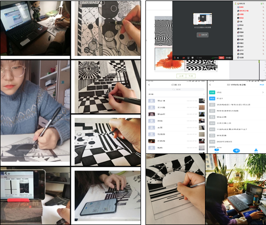 开启线上课堂,预示着很多工作都要从零开始,《构成设计》课程教学团队的老师们根据学院开展网上教学的预案,对课程教学进行了深入细致的研讨,主要围绕三个方面的问题:1.如何保证线上教学的成效,达到预期的教学目标?2.如何让课堂生动,调动学生的学习积极性?3.如何对学生学习质量做好监督和评价?针对这些问题,老师们积极探索,有针对性性的对教学平台的选用、教学模式、教学内容和教学方法等进行反复的推敲和落实,切实做好对学生的课前、课中和课后的教学质量的控制,尤其在课中采用随机抽查和将镜头给学生的方法解决线上教学所存在的远程问题。