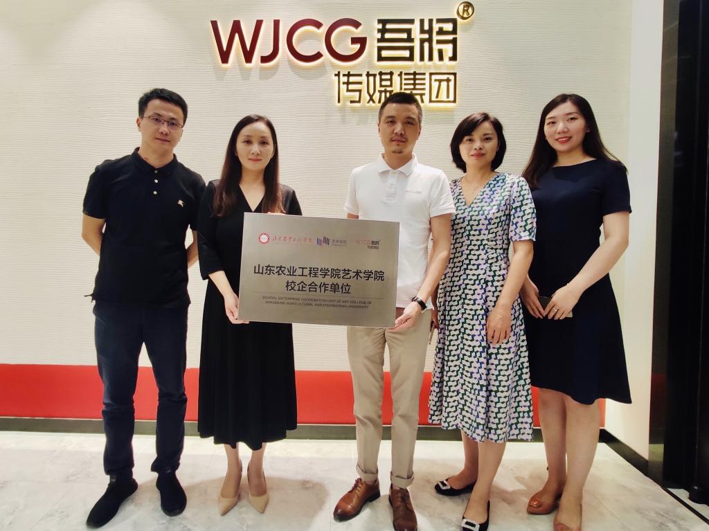 7月24日,艺术学院院长韩璐,视觉传达教研室主任魏向昕,教师张腾、孙颖一行4人赴吾将传媒集团举行校企合作签约暨授牌仪式,共同探讨校企合作新路径。吾将传媒集团总经理李坤及集团骨干出席签约授牌仪式。