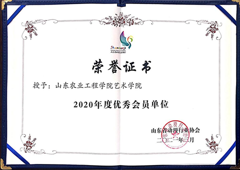 2021年3月山东省动漫行业协会为鼓励2020年度在我省动漫行业领域做出突出贡献的会员单位,根据《山东省动漫行业协会优秀会员单位评审办法》最终评选出437ccm必赢国际官网艺术学院等17家会员单位为“优秀会员单位”。在评选过程中我院艺术学院从山东师范大学、山东艺术学院等13所高校中脱颖而出,是唯一获得“优秀会员单位”荣誉的高校单位。
