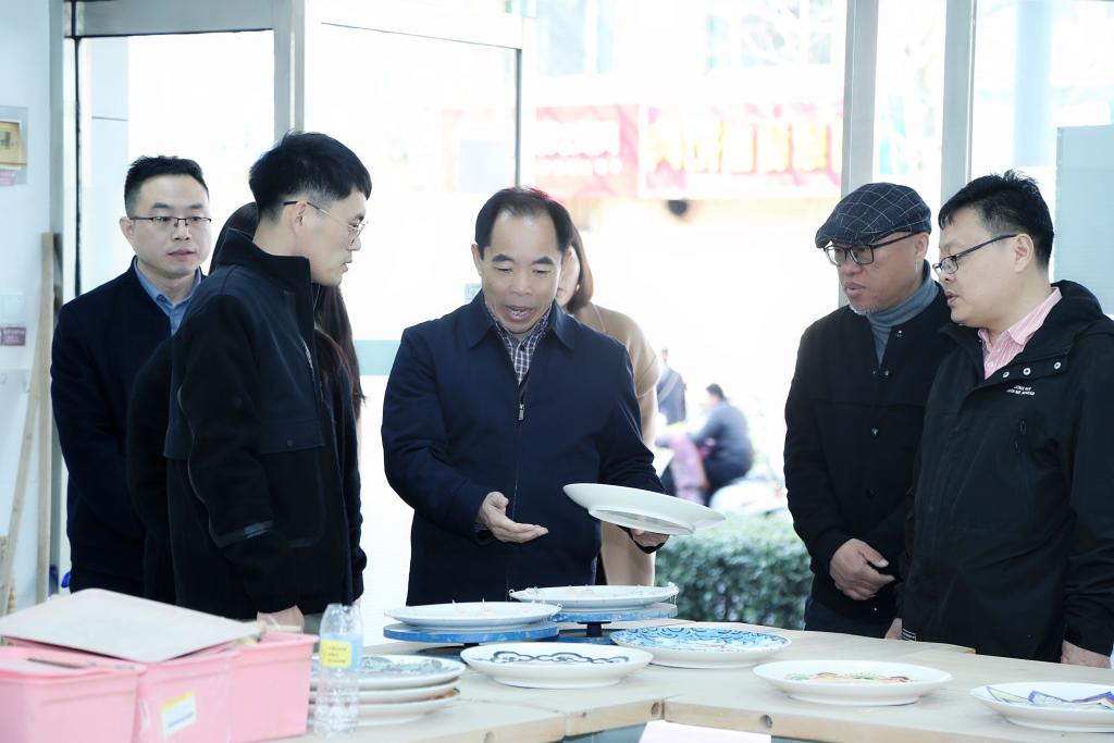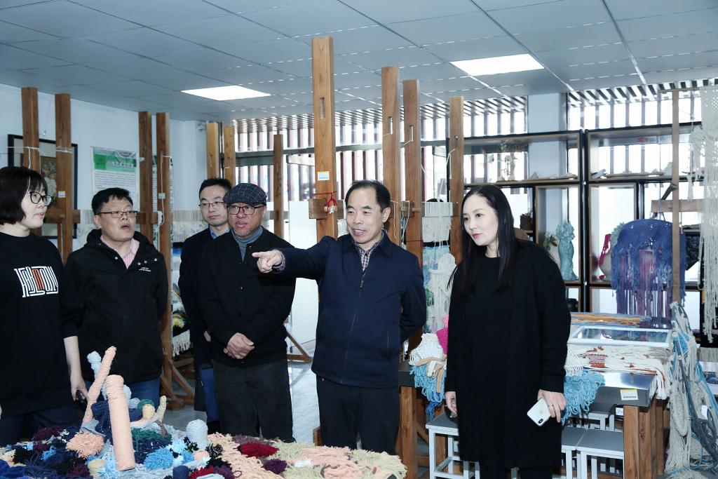 李校长首先对学院艺术实践教学中心进行实地考察,先后察看综合材料实验室、纤维艺术实验室、印刷实验室、陶艺实验室、印染实验室及优秀作品展室,详细询问各实验室开设实践项目情况,并对学生创作的各类工艺美术作品给予高度评价。