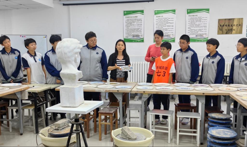 为迎接“全国科普日”的到来,我院积极开展了为期一周的服务学校周边社区的科普活动。本次活动的主题是“山东出好品,匠心传千年”,邀请了济南历城双语实验学校的师生走进校园,参观艺术学院工艺美术系列实验室,为他们科普山东手造工艺品的传承、技艺等科学知识。
