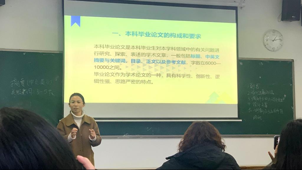 通过这次报告,同学们对本科毕业论文的写作结构、写作要求、写作方法、写作内容、写作思路和注意事项等有了初步的了解,为后期毕业论文写作工作奠定了良好的基础。