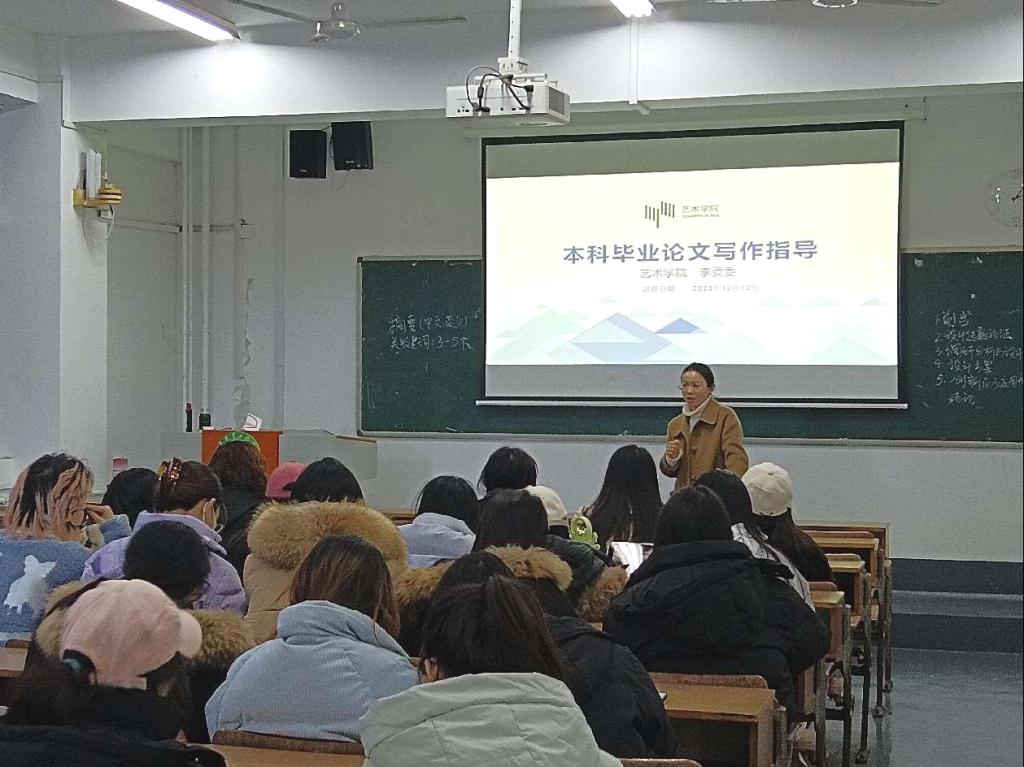 2023年12月12日,艺术学院教师李委委在济南1号教学楼201教室开展了《本科毕业论文写作指导》专题学术讲座,视觉传达设计50余名师生参加了此次讲座。