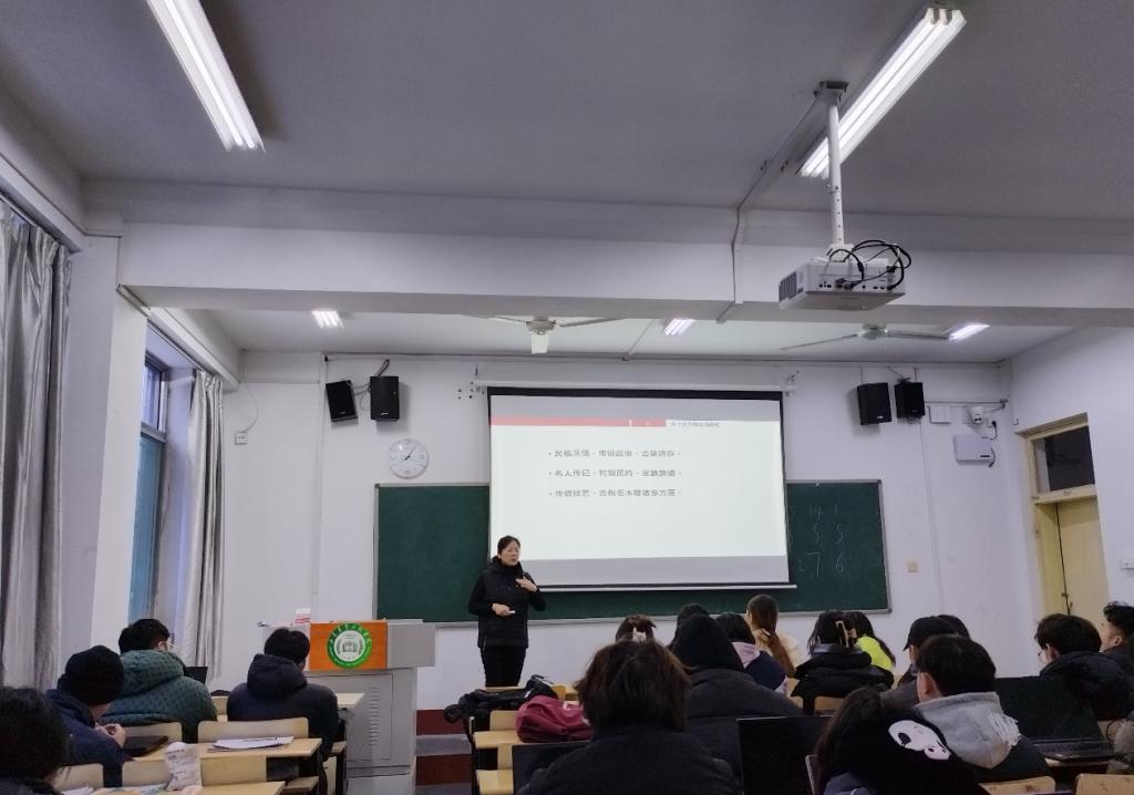 2023年12月18日,艺术学院教师代秀芳在济南校区一号教学楼104室开展了“乡土文化与传承创新” 课程导引学术报告活动。21级视觉传达设计专业50余名同学参加了本次活动。