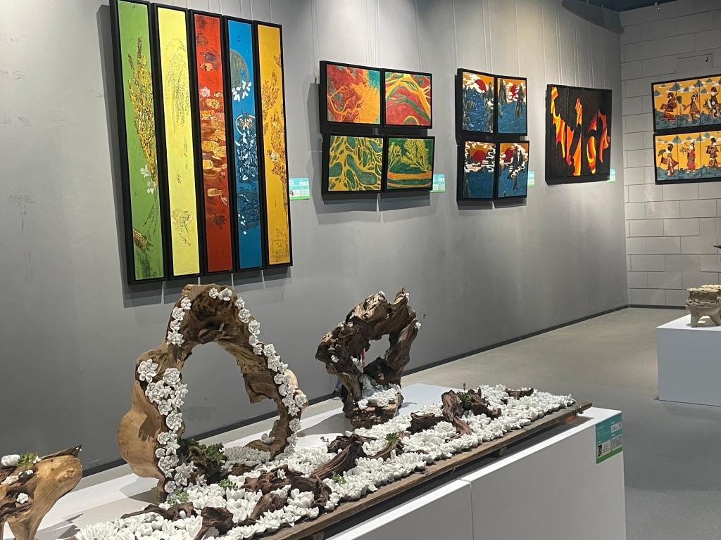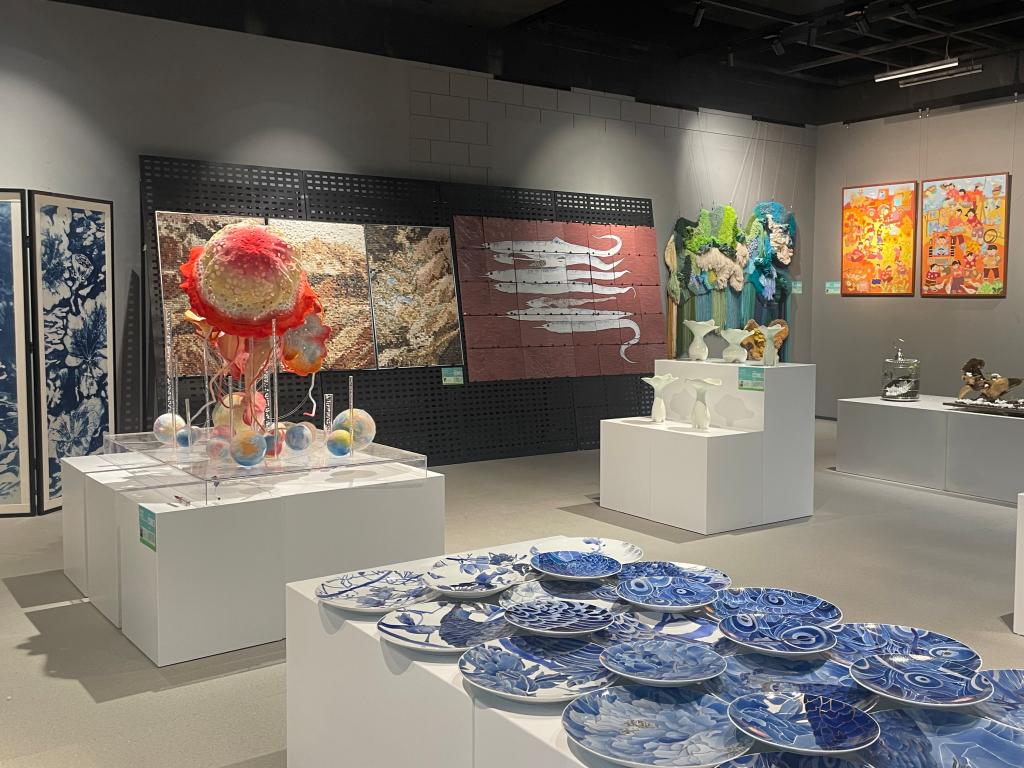 本次展出的手造作品是艺术学院主动服务地方经济发展需求,推出的一批艺术设计教育教学最新成果,汇集了学院工艺美术、视觉传达设计等专业学生创作的作品近百件(套)。作品类型多样、题材丰富,涵盖漆画漆器、纤维编织、手工印染、陶艺设计、陶瓷绘画、木刻烙画、掐丝工艺、文创产品等。学生使用创新的、时代的语言,将文化创意、现代设计融入传统手工艺,通过独具匠心的工艺美术作品和文创产品,展现“山东手造”新活力。