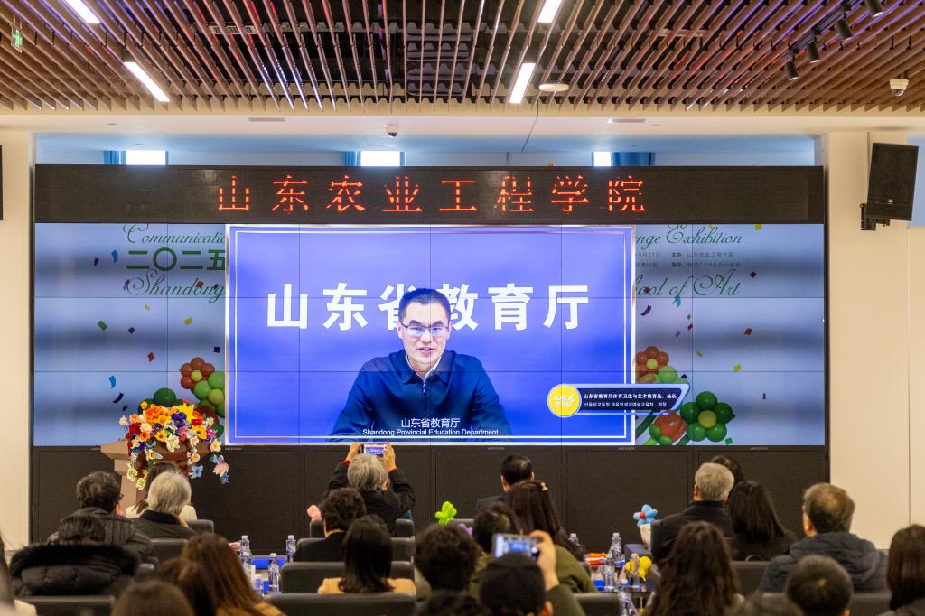 山东省教育厅体育卫生与艺术教育处处长王桂龙通过视频为展览发来贺词。王桂龙表示,艺术是加强国际人文交流和融合的重要途径,是推动国际关系和跨文化传播的重要力量。山东省教育厅始终高度重视国际艺术人文交流工作,鼓励并支持山东高校积极搭建交流平台,通过深化国际文化艺术交流项目,展现中华文化独特魅力,借鉴世界各国文明成果,促进世界文化交流互鉴,不断培养和造就优秀艺术设计人才,创作出更多精品力作。